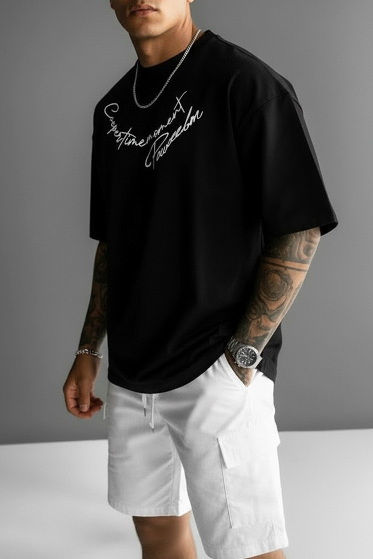 - Tricou pentru bărbăti modern, cu o croială confortabilă și imprimeu în jurul decolteului, potrivit pentru viața de zi cu zi, o plimbare sau ca o completare a look-ului tău sportiv.
