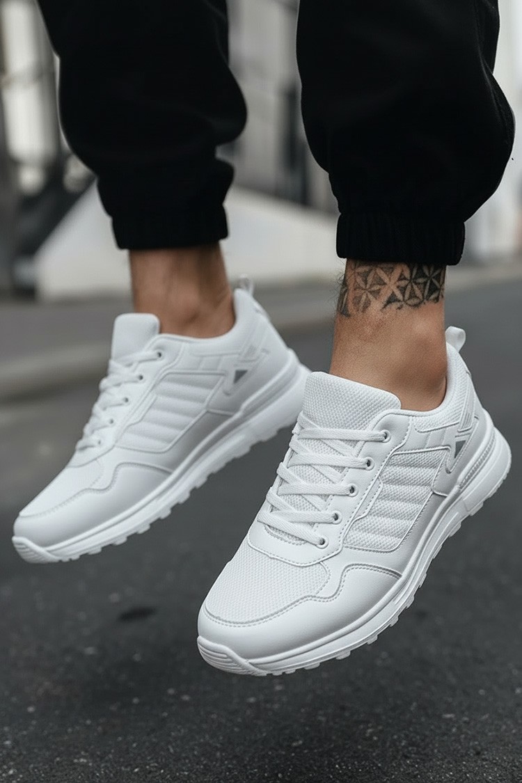 - Adidași pentru bărbați, de culoare alba, potriviți pentru viata de zi cu zi, sport sau plimbări.
