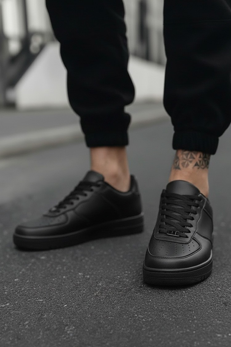 - Teniși moderni pentru bărbați, de culoare neagra, confecționați din piele ecologică, potriviți pentru viata de zi cu zi.
