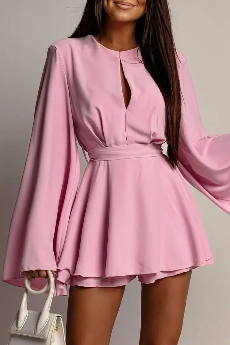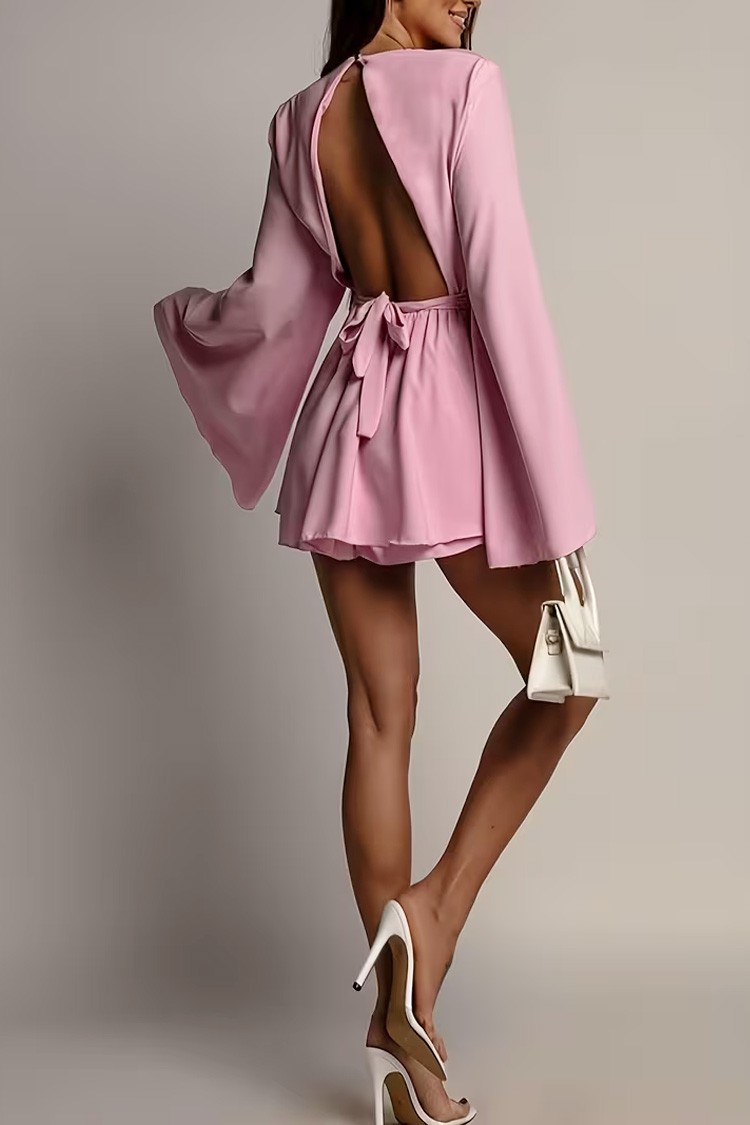 - Modelul are o lungime scurtă, o croială atractivă, mâneci lungi și spatele gol.