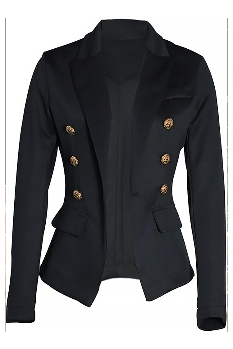 - Modelul are o croială elegantă, culoare neagră și nasturi aurii.