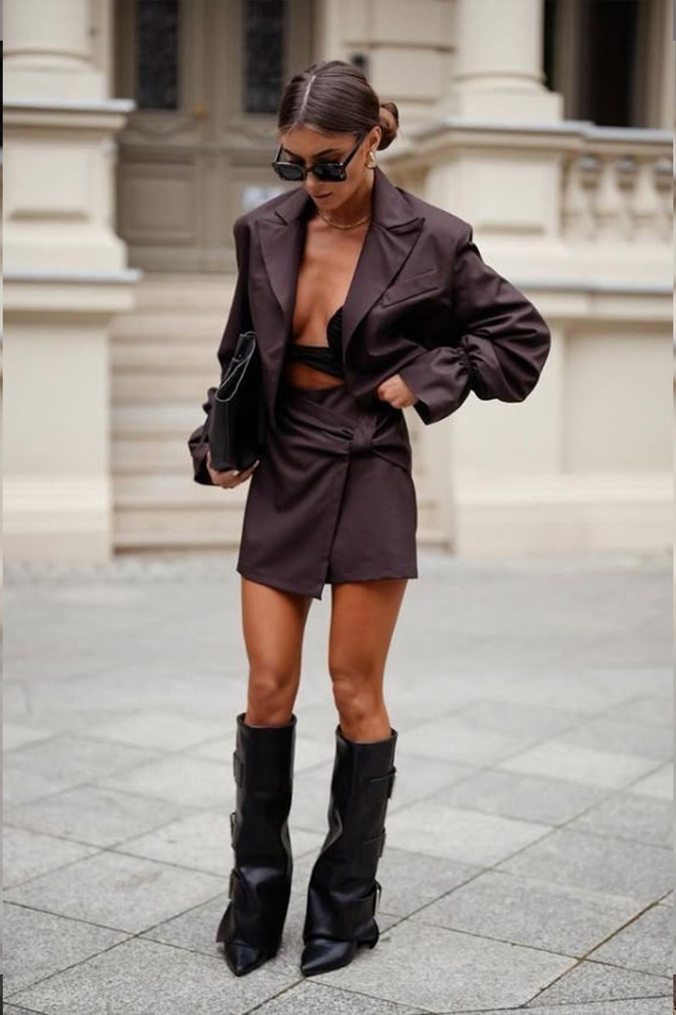 - Sacou are o lungime scurtă și mâneci lungi spectaculoase.