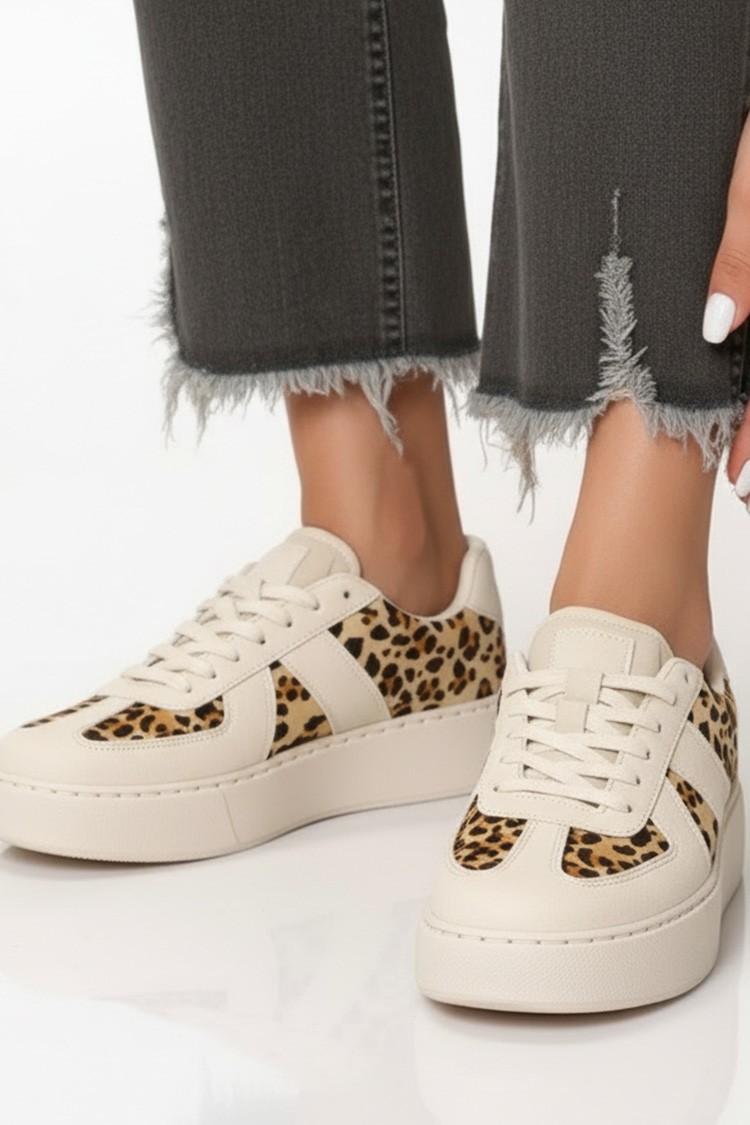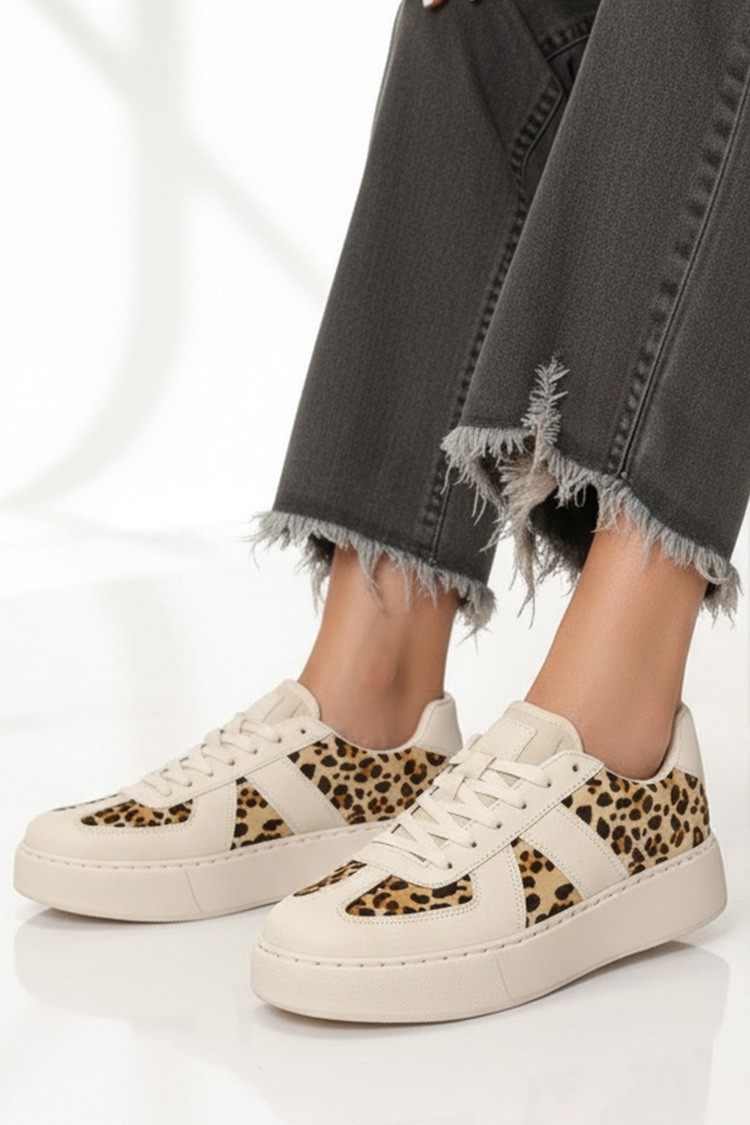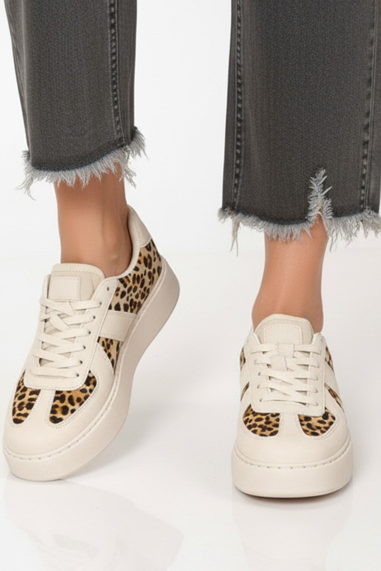 - Pentru a te mișca liber, alege aceste teniși dama cu un design atractiv de culoare ecru.