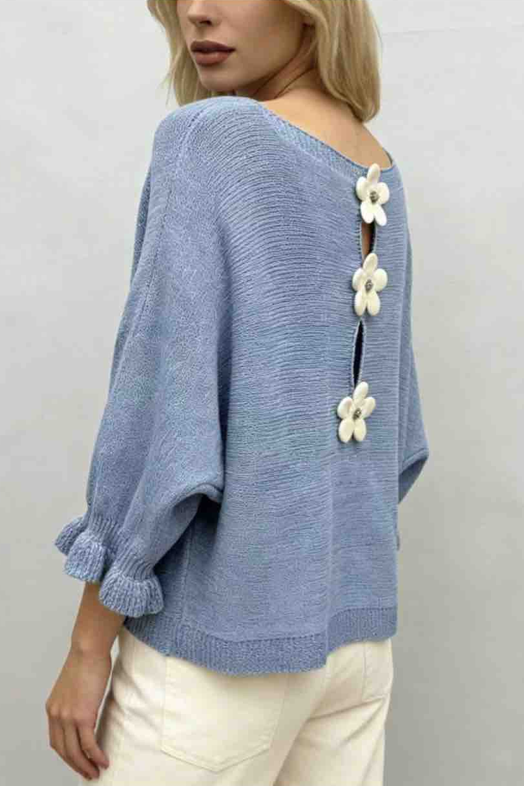 - Modelul are o croială confortabilă, potrivită pentru orice siluetă, și un decolteu rotund cu flori spectaculoase pe spate.