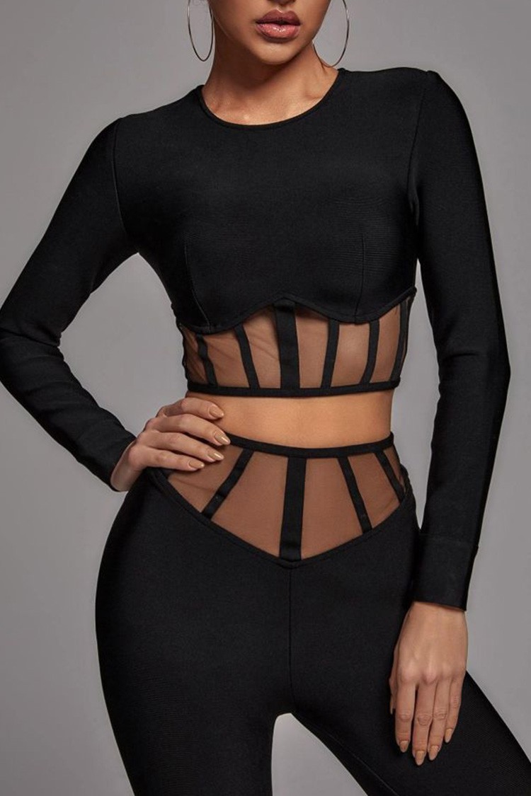 - Bluza este croită scurt, cu mâneci lungi și un design sexy.