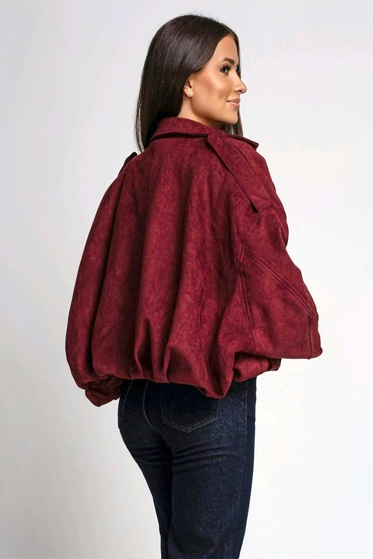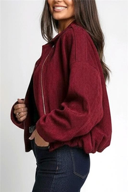 - Modelul are o croială oversize, este din piele ecologică și se închide cu fermoar în față.