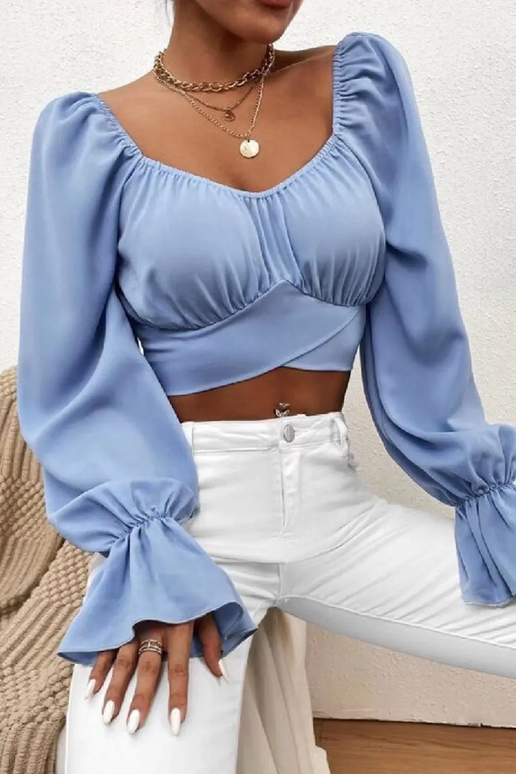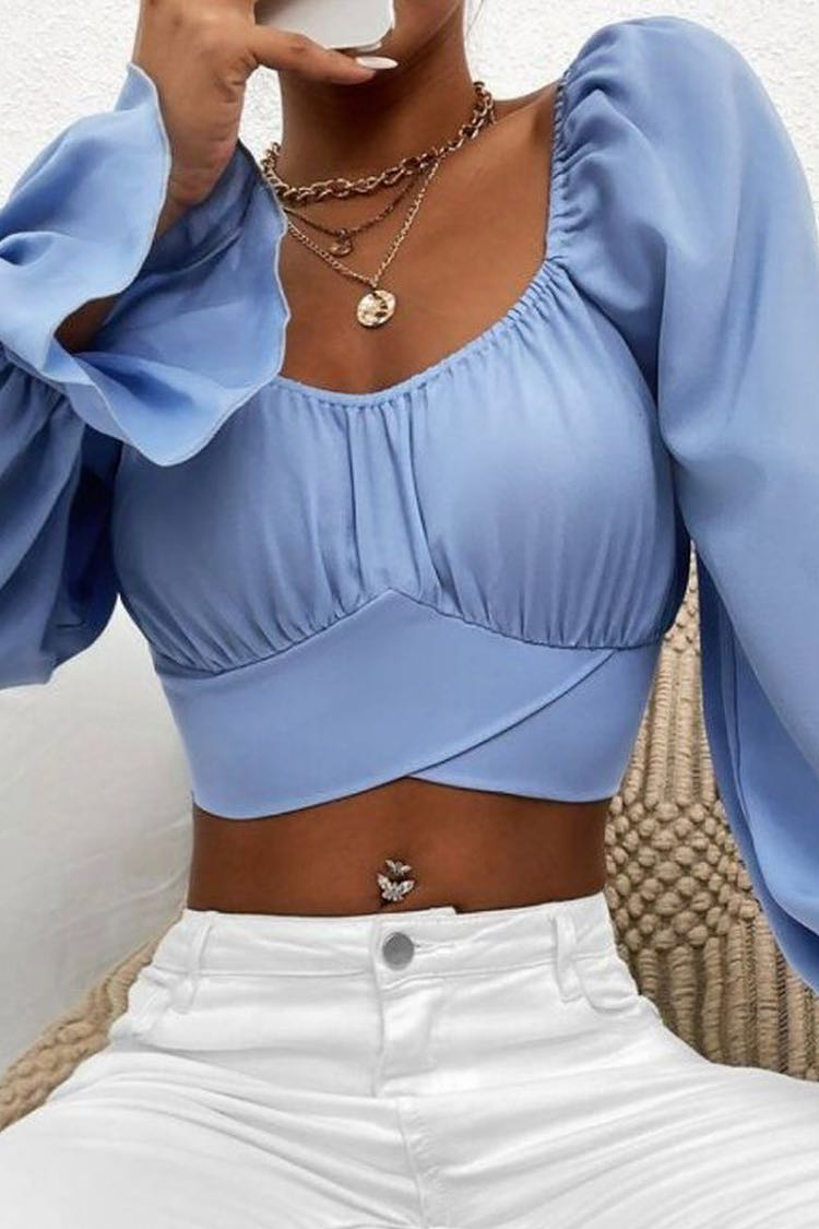- Modelul are un design sexy, mâneci lungi, bufante, un decolteu atractiv și o lungime scurtă.