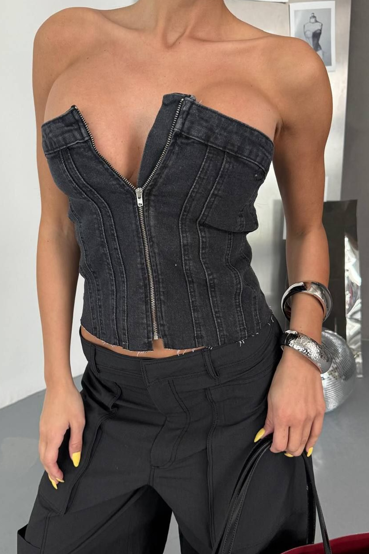 - Completează-ți look-ul atractiv cu un top din denim potrivit pentru ținutele de zi cu zi și cele la modă.