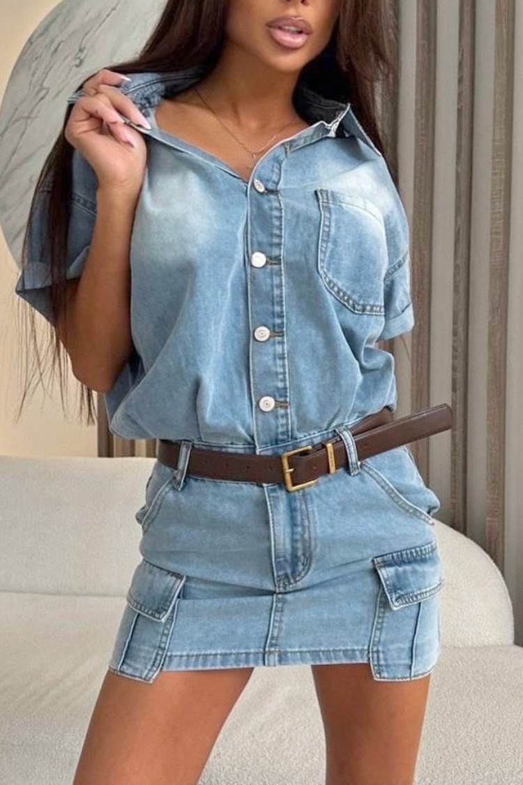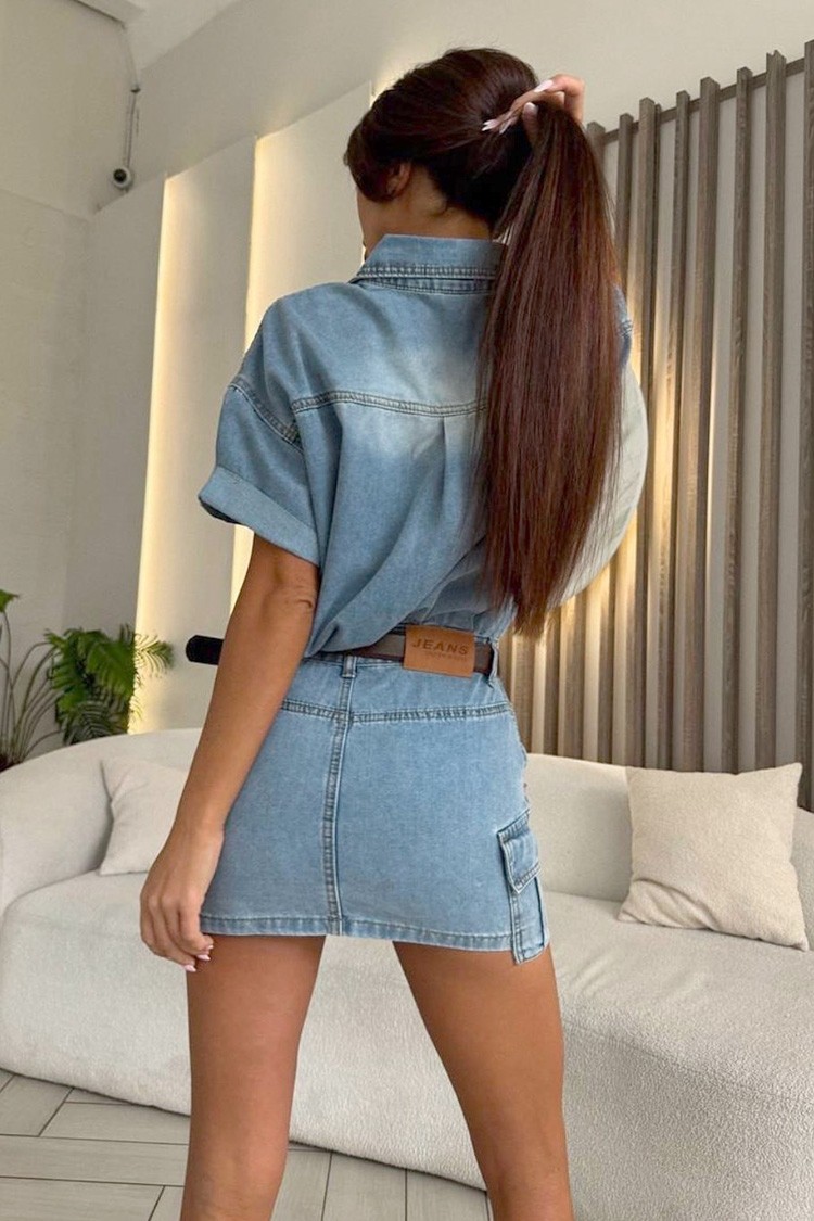 - Modelul are un design atractiv, mâneci scurte și nasturi.