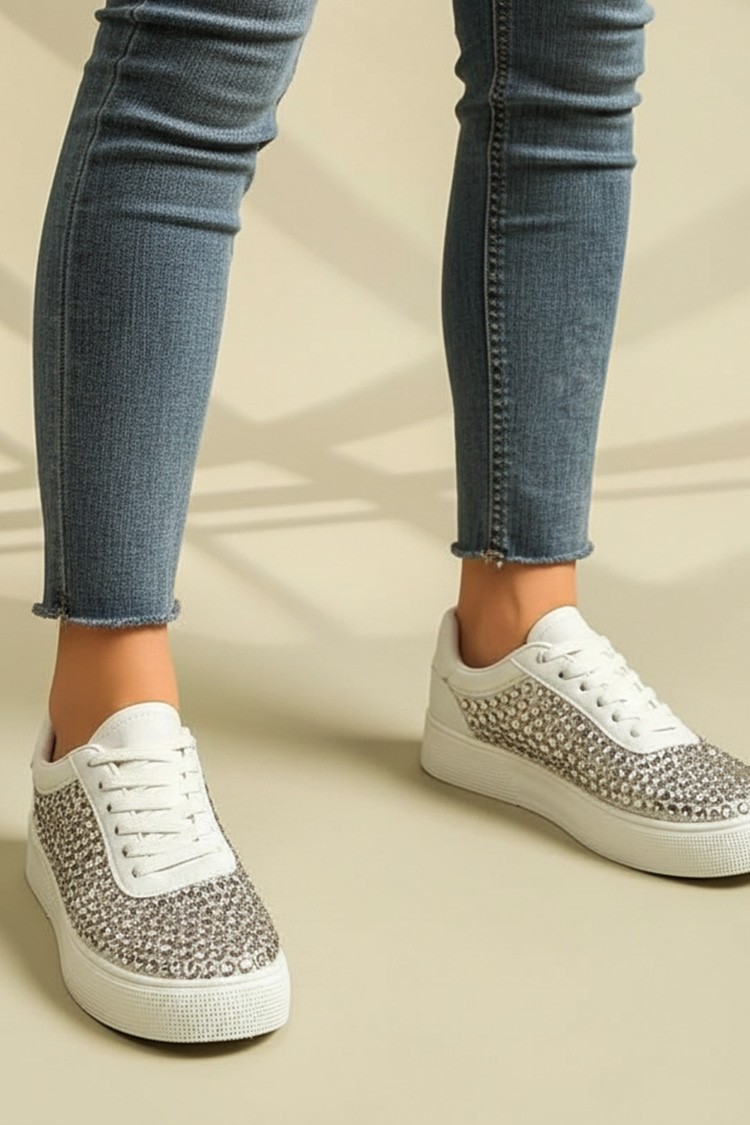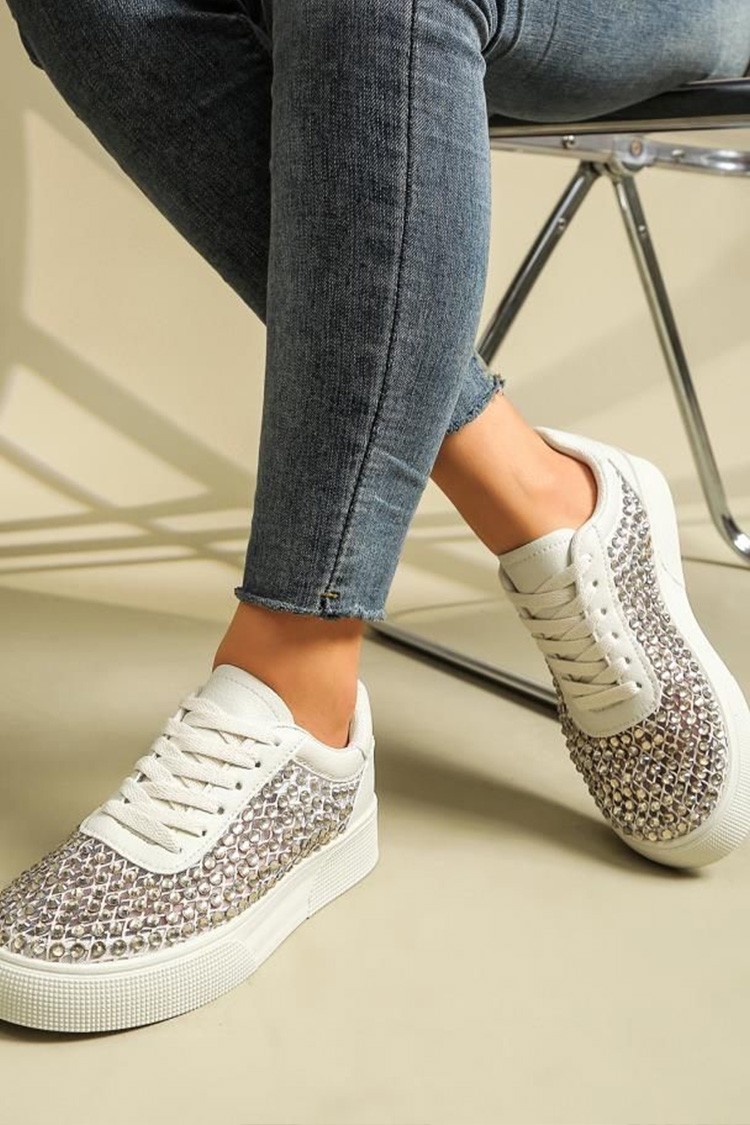 - Pentru a te mișca liber, alege aceste teniși dama damă cu un cu un design atractiv cu pietre decorative.