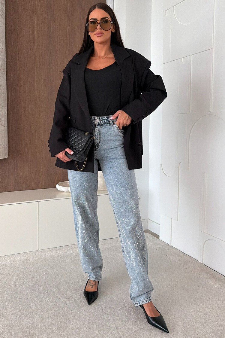- O puteți combina cu un top, pantaloni drepți și tocuri înalte pentru un look complet și elegant.