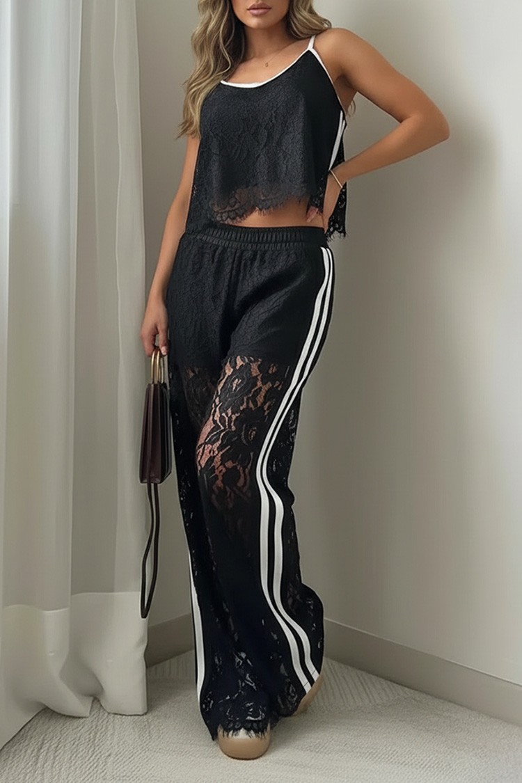 - Pantalonii au talie înaltă, efect transparent și dantelă sexy.