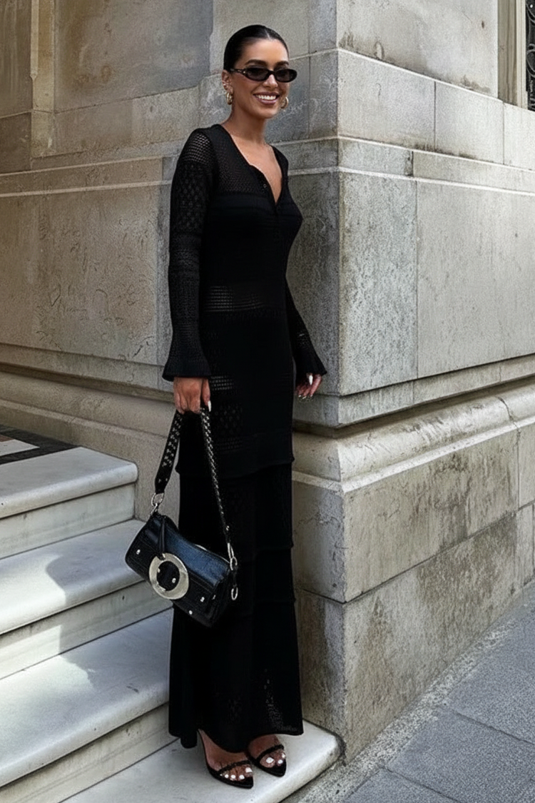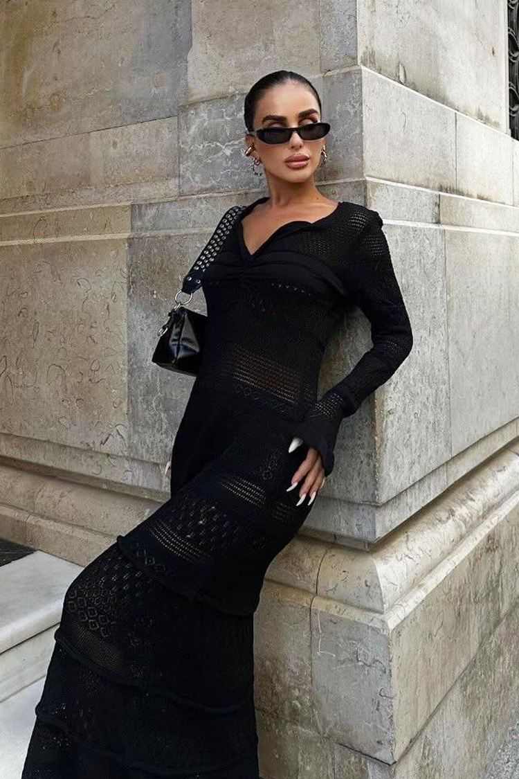 - Pentru a atrage toate privirile, alege această rochie lungă, tricotată, potrivită pentru ținute de zi cu zi.