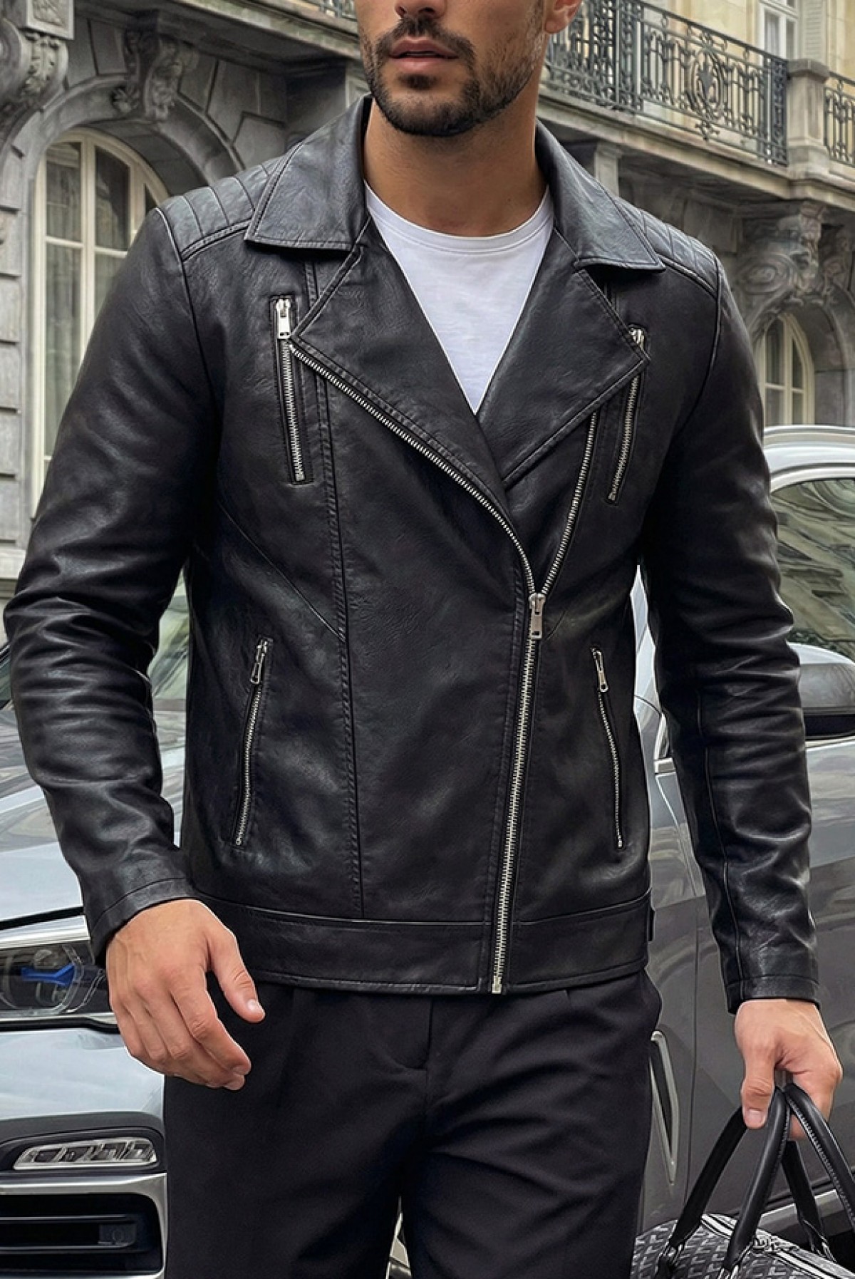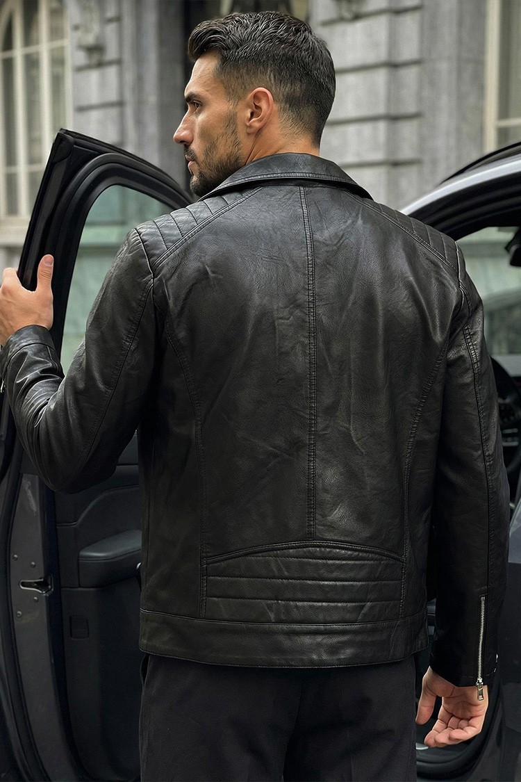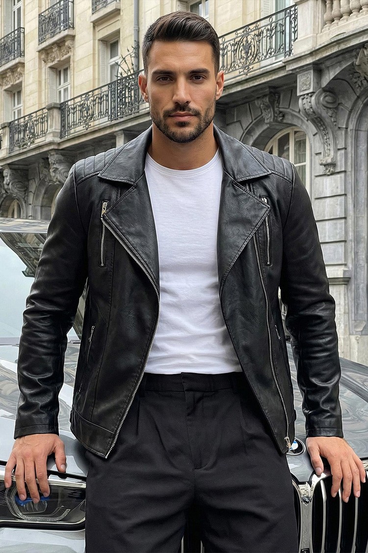 - Gecaă pentru bărbăti cu design clasic, fermoare, guler și buzunare laterale.