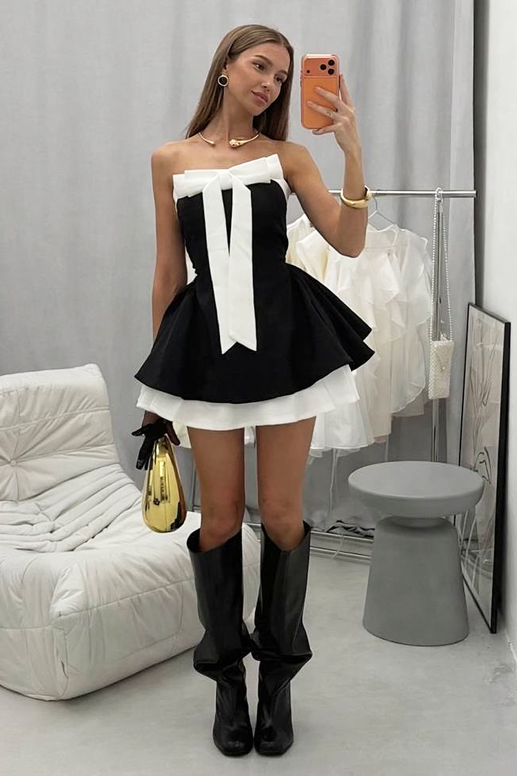 - Pentru a atrage toate privirile, alege această rochie scurtă cu un design incredibil în culori clasice.