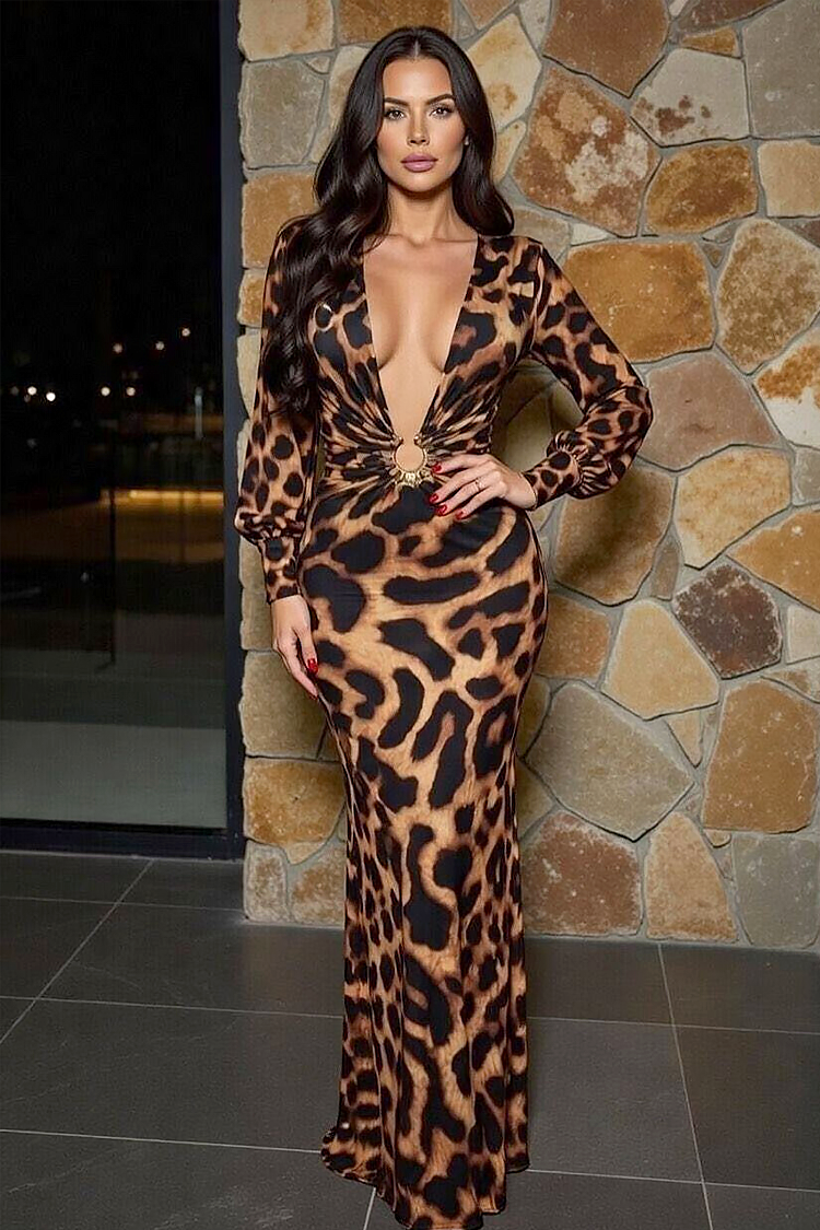 - Modelul are o croială mulata, mâneci lungi, animal print și un decolteu adânc V.