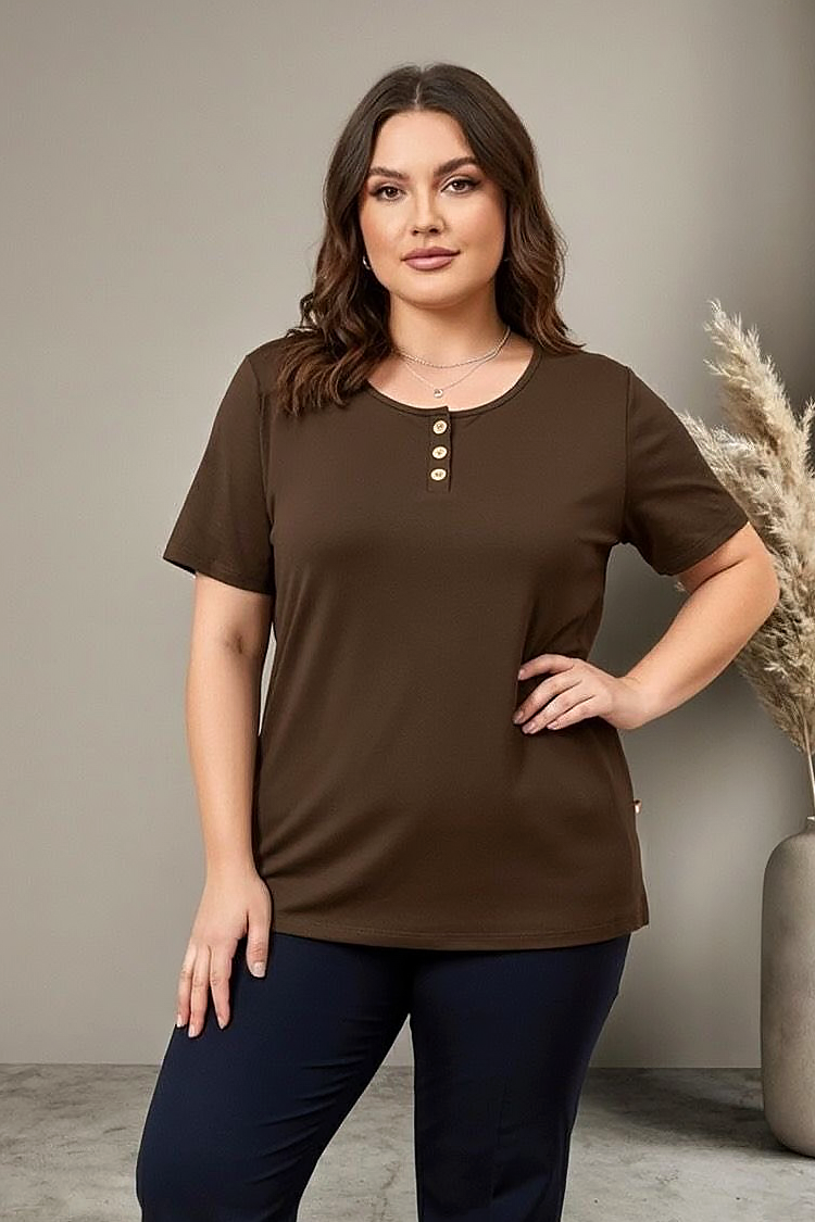 - Se potrivește perfect oricărei siluete. Modelul are mâneci scurte, nasturi și un decolteu clasic.
