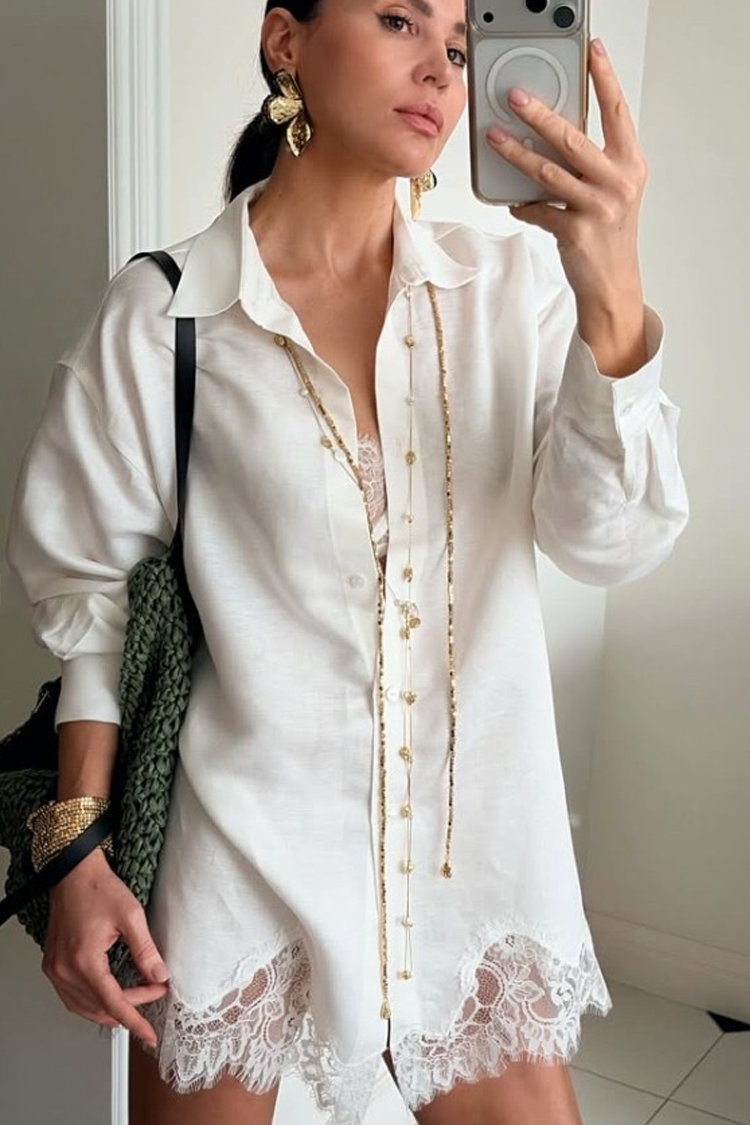 - Pantalonii au mâneci scurte și confortabile, iar cămașa are mâneci lungi și închidere standard cu nasturi pe toată lungimea.