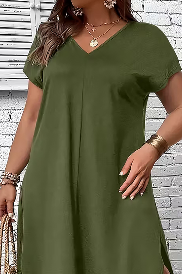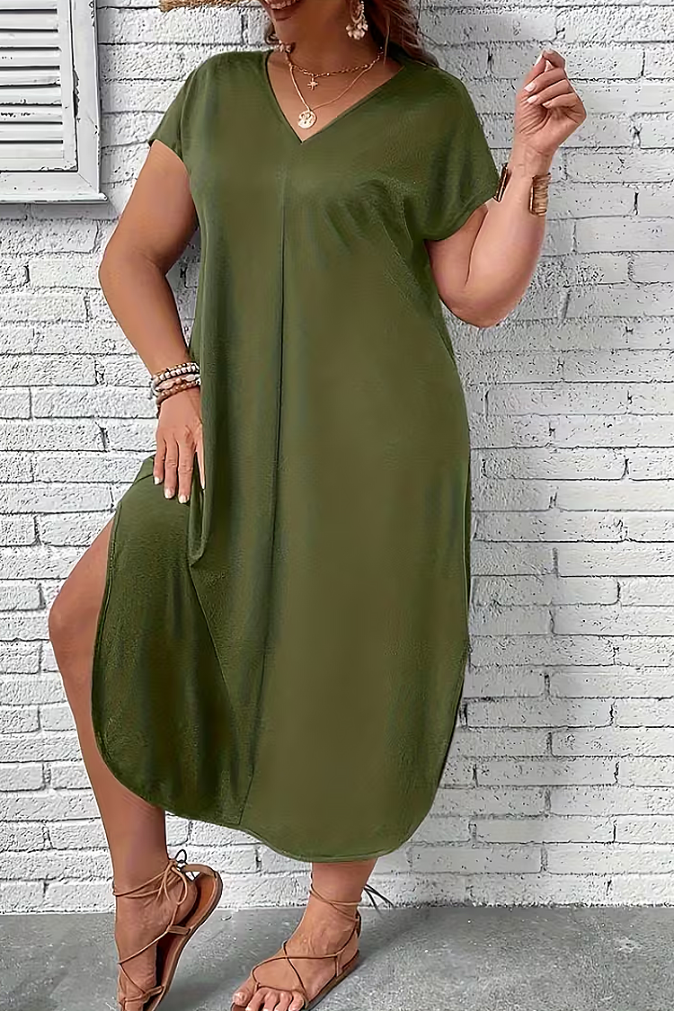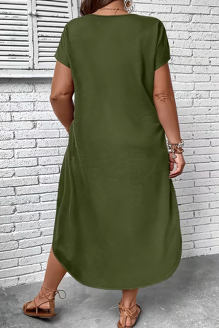 - Rochia are mâneci scurte și o croială maxi, potrivită pentru orice siluetă.