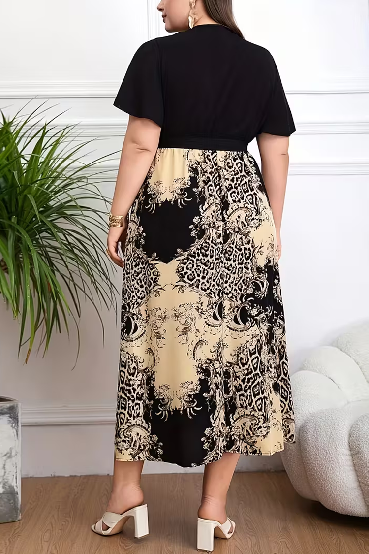 - Rochia are mâneci scurte și o croială maxi, potrivită pentru orice siluetă.