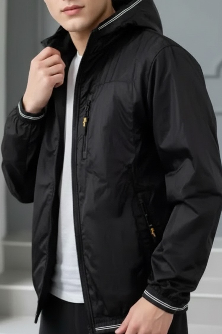 - Geacă scurtă pentru bărbați și cu un design elegant și curat, potrivită pentru ținuta de zi cu zi.