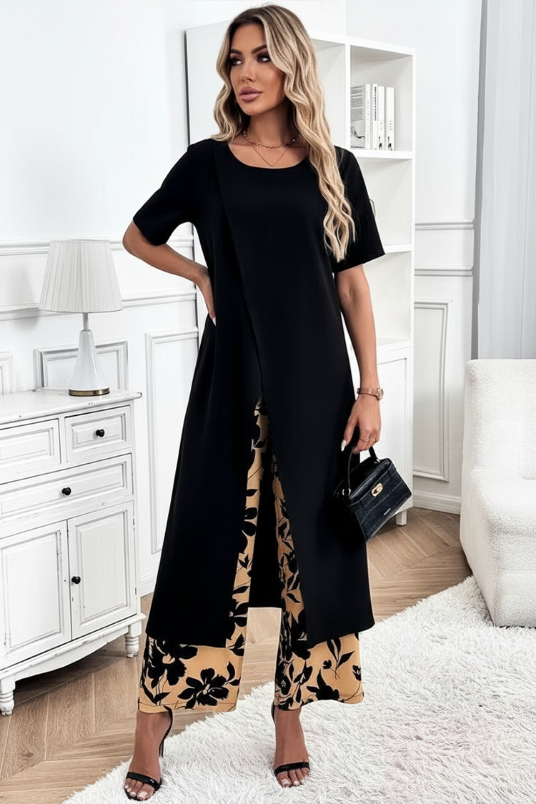 - Set elegant din două piese - tunică și pantaloni în culori clasice.