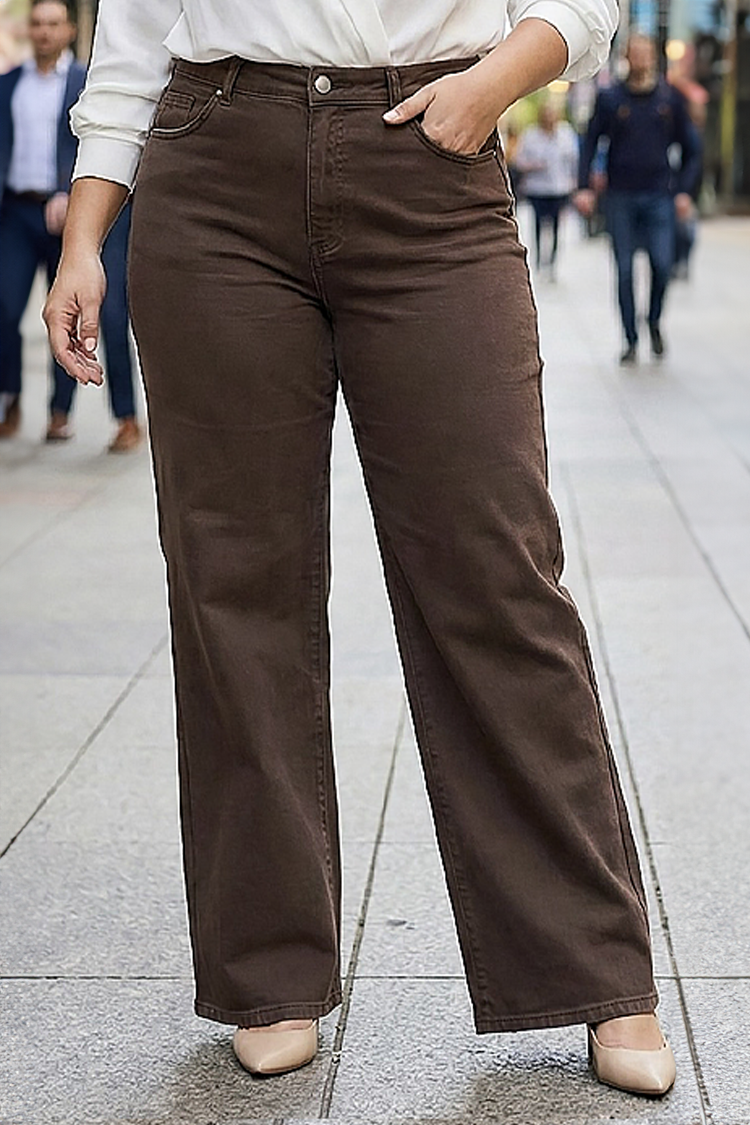 - Modelul are talie înaltă, croială dreaptă, buzunare practice și un design clasic.
