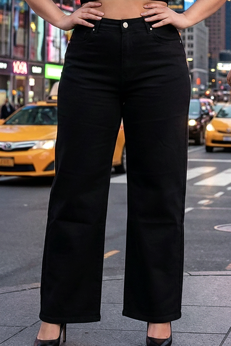 - Modelul are talie înaltă, croială dreaptă, buzunare practice și un design clasic.
