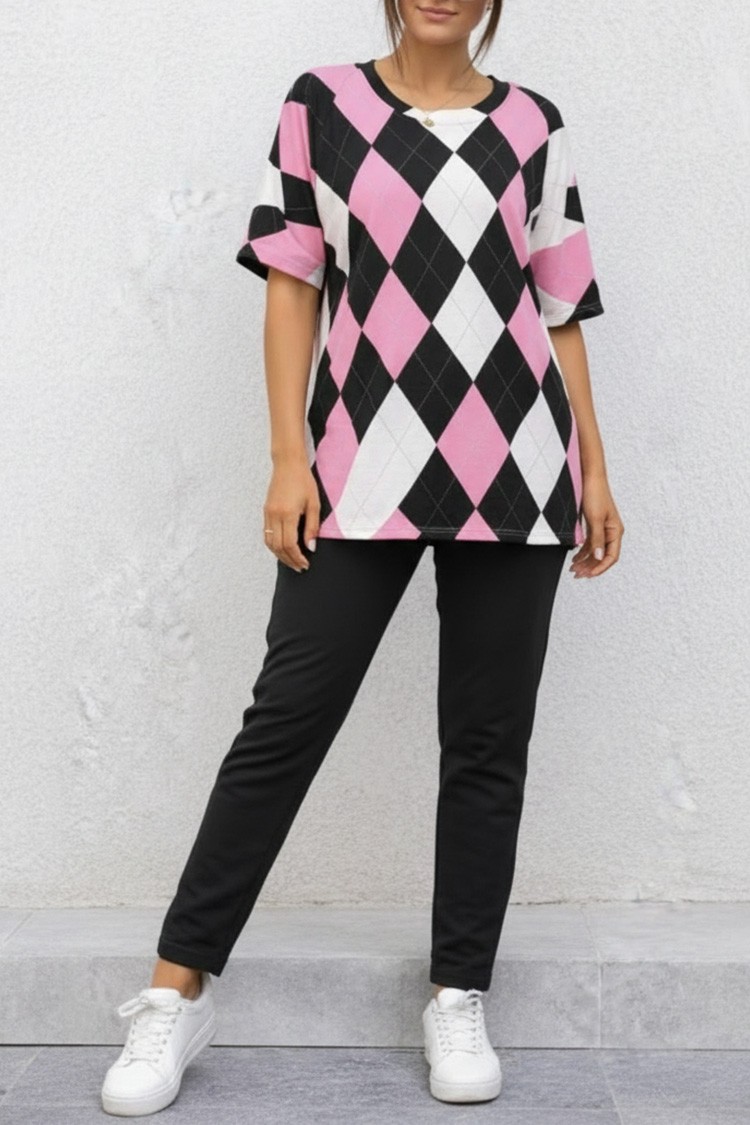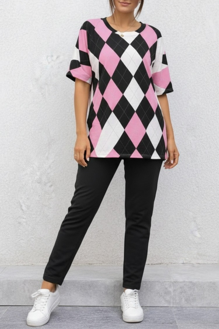 - Set de dama din două piese pentru viata de zi cu zi, format dintr-un tricou și pantaloni în culori clasice.