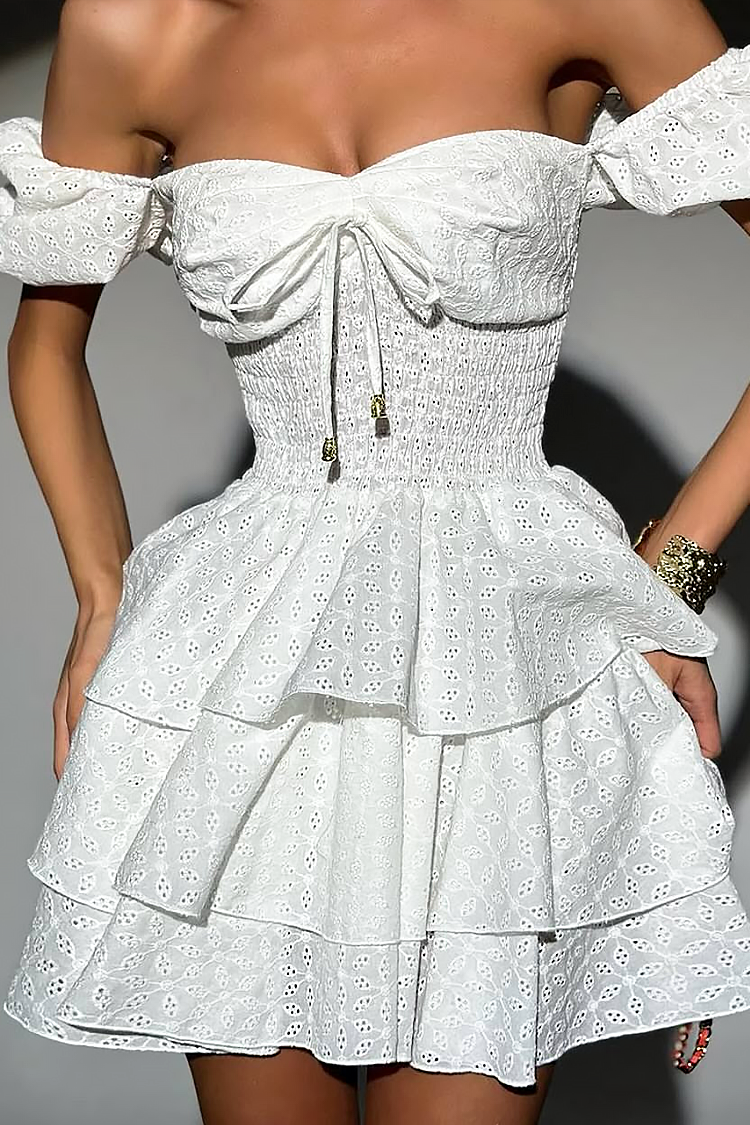 - Modelul are o lungime scurtă, un decolteu sexy, un material spectaculos și mâneci căzute.