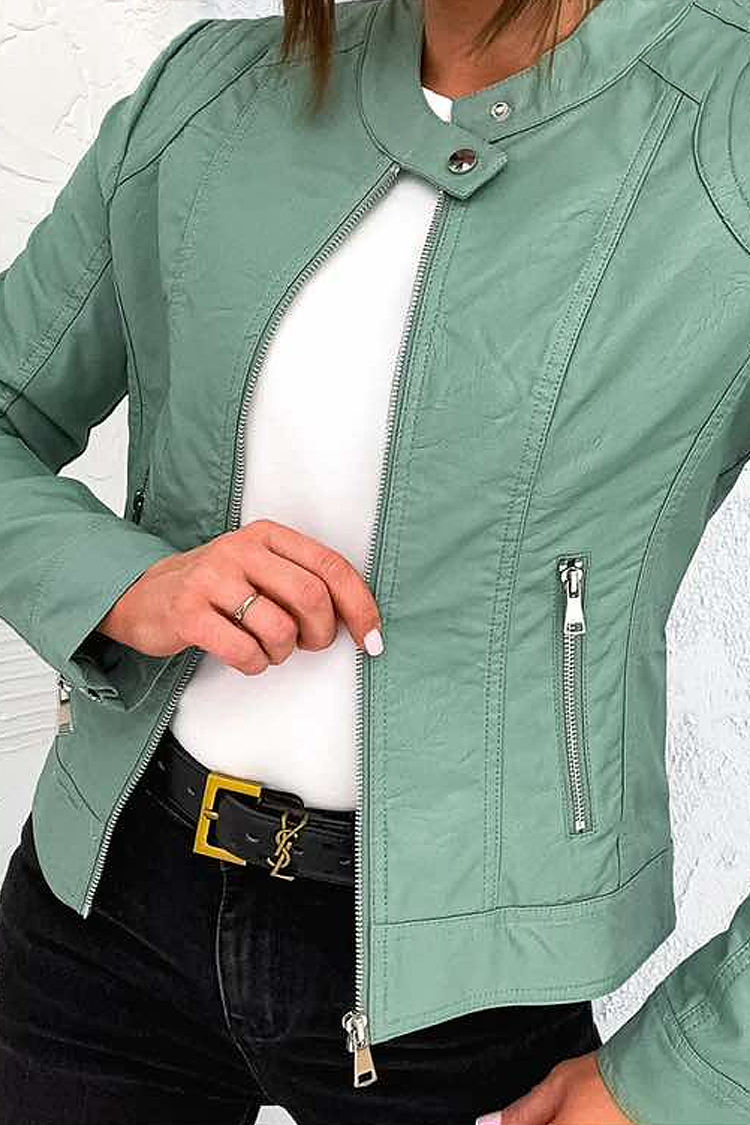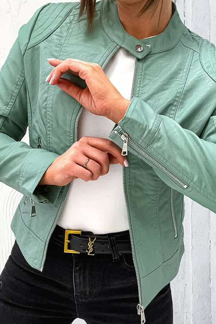 - Modelul are o croială clasică, din piele ecologică moale, design spectaculos, fermoar, lungime scurtă și buzunare.