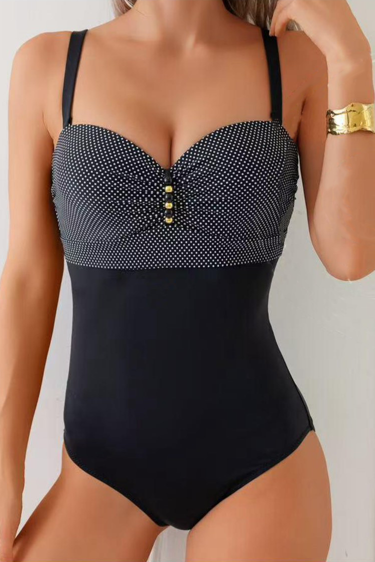 - Un costum de baie întreg, în culori clasice cu un design modern, potrivit pentru vacanțe la plajă și la spa.