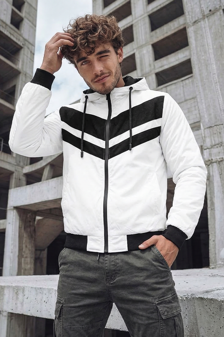 - Geacă pentru bărbăti scurtă și cu un design elegant și curat, potrivită pentru ținuta de zi cu zi.