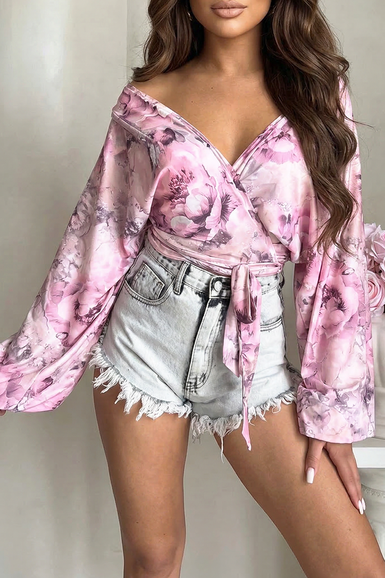 - Modelul are mâneci lungi, o croială lejeră, un model floral și o croială sexy.