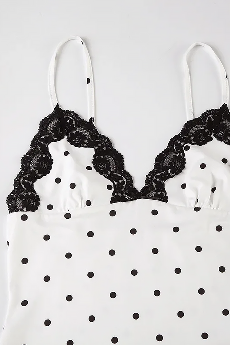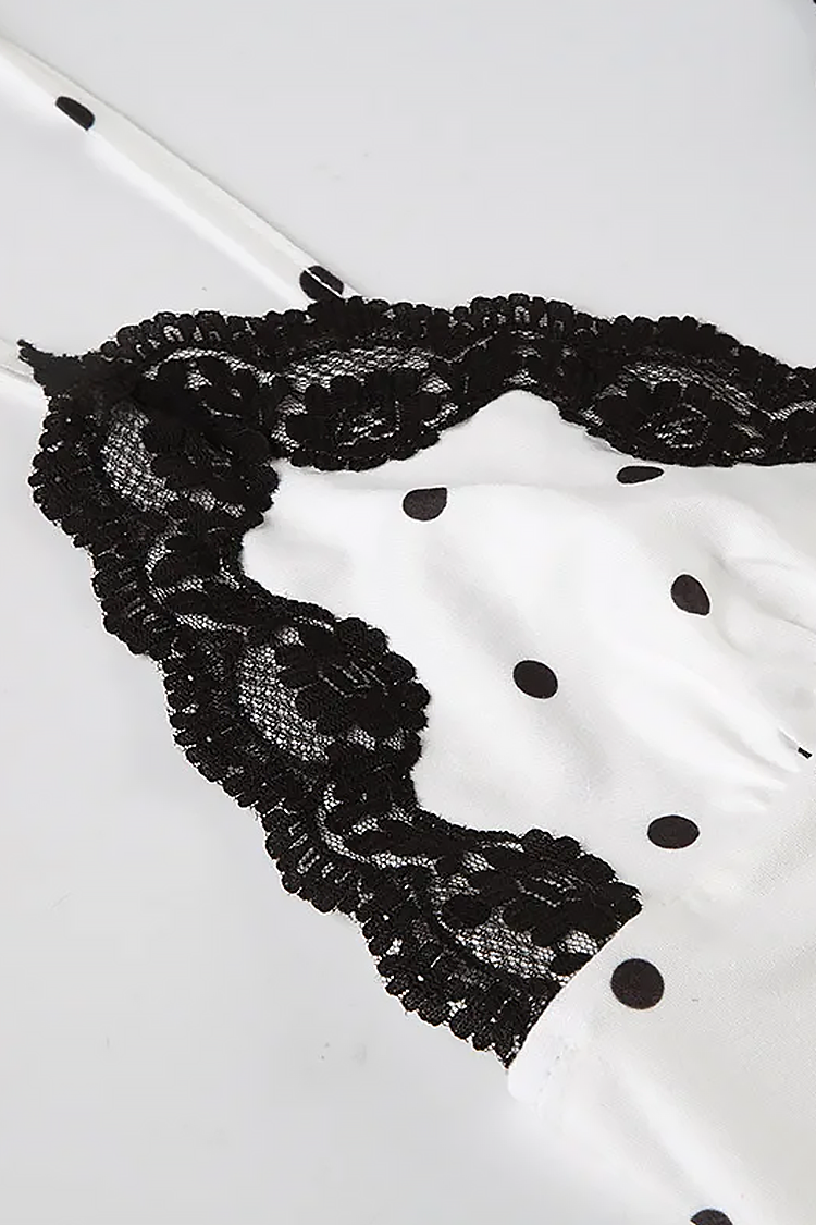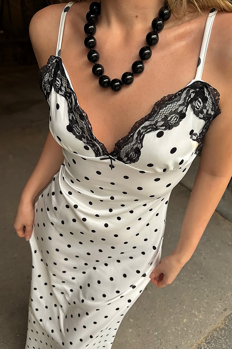 - Modelul are un design elegant, model contrastant cu buline și un decolteu sexy cu dantelă.