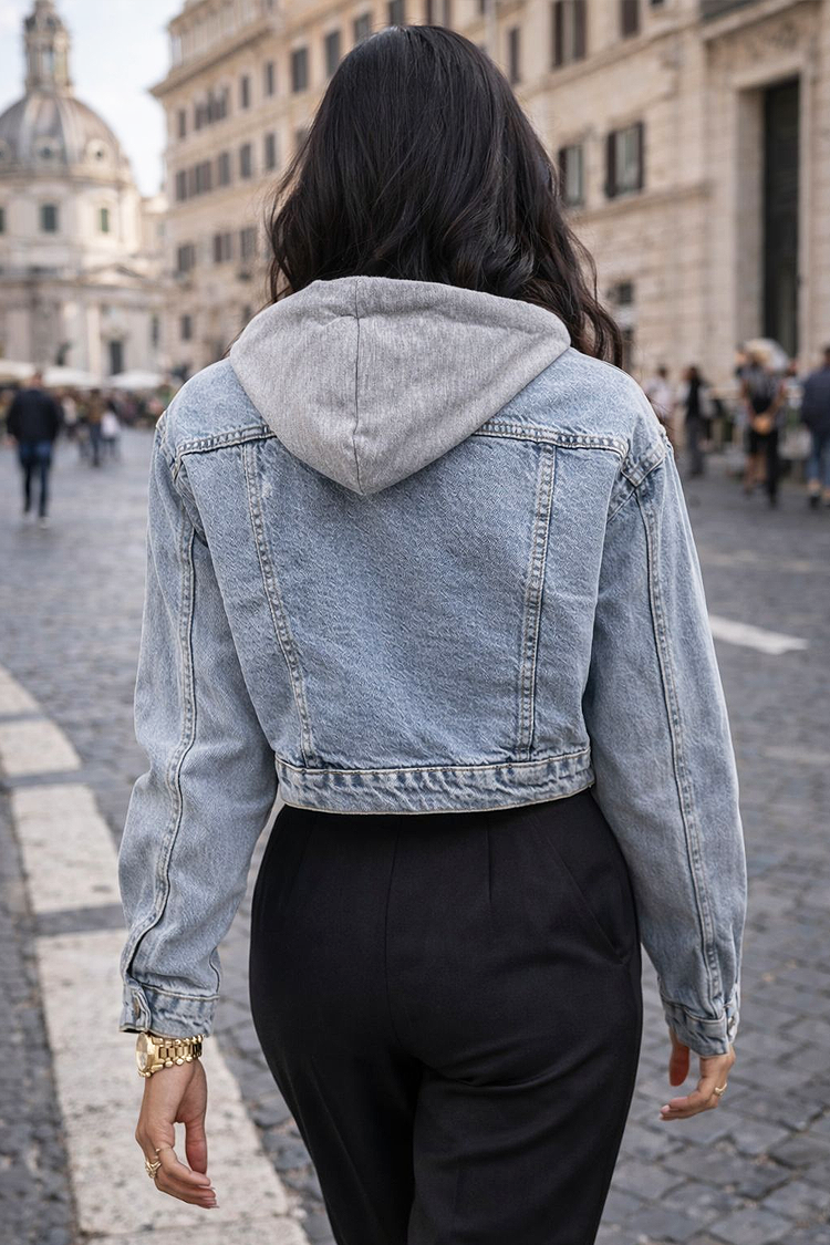 - Pentru un look elegant, alege această geacă din denim, potrivită pentru orice look la modă.