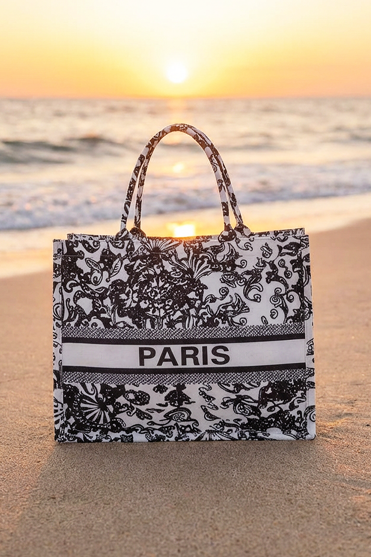 - Geanta de plaja cu imprimeu atragator - accesoriu la moda stilat pentru vacanta ta de vara, prin care te vei remarca.