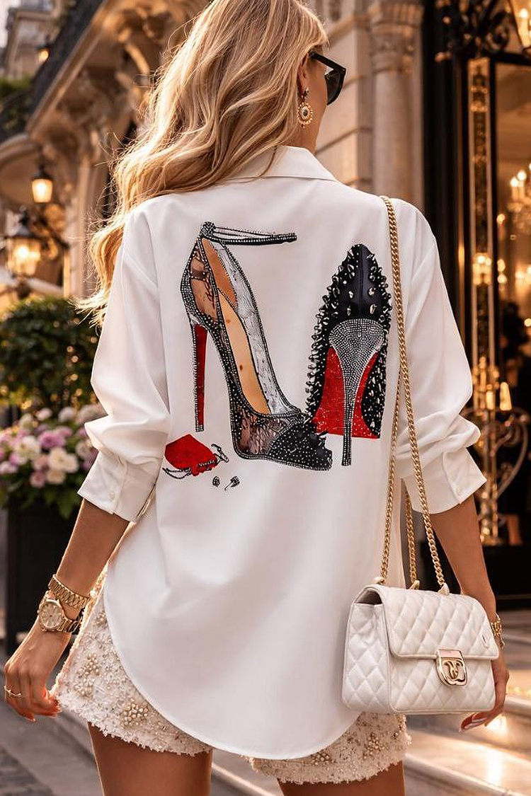 - Cămașă atractivă de damă, de culoare albă, potrivită pentru ținute la modă de zi cu zi.