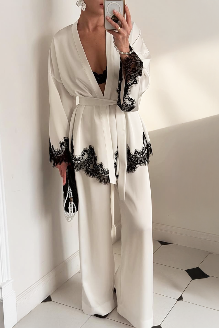 - Kimono-ul are un design sexy, o curea din același material și dantelă neagră la margini.
