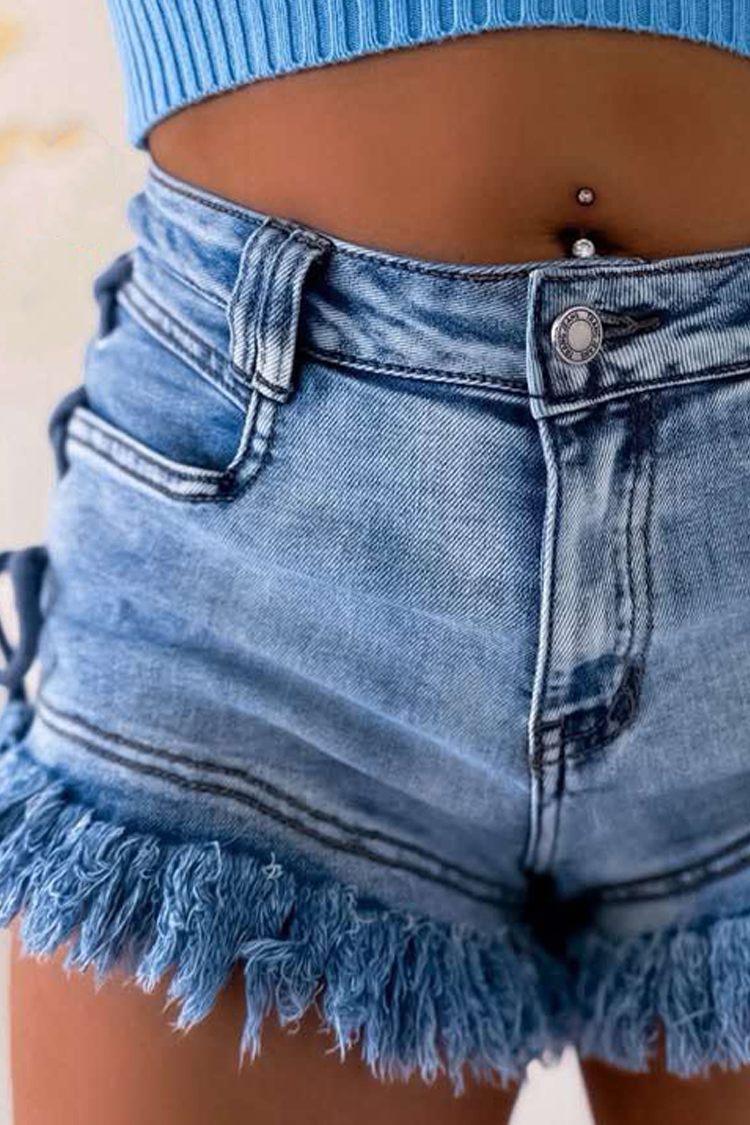 - Pantaloni scurți de damă model basic cu model de culoare albastru deschis, potriviți pentru viața de zi cu zi sau pentru o plimbare.