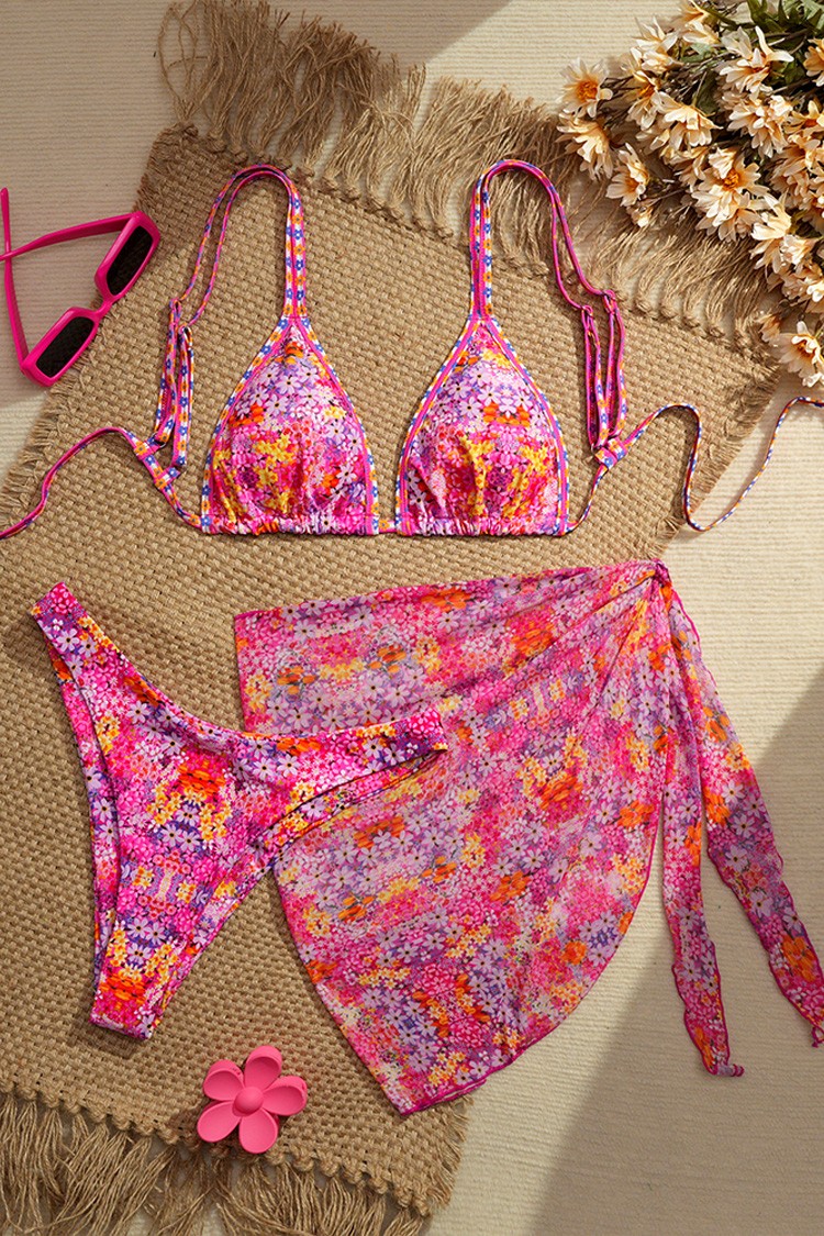 - Set modern de plajă care include un costum de baie din două piese și pareo.