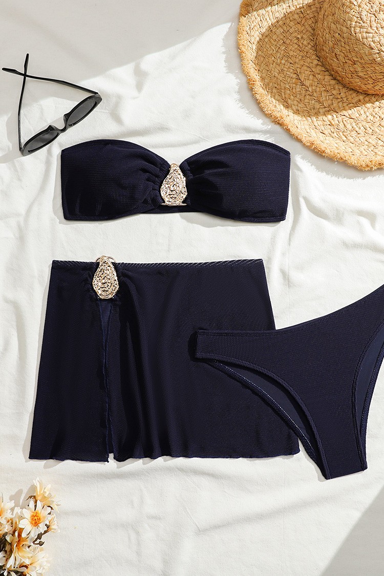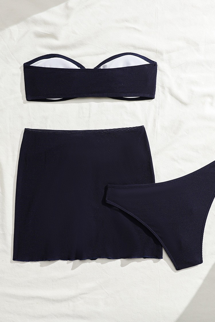 - Set modern de plajă format din costum de baie din două piese și o fustă.