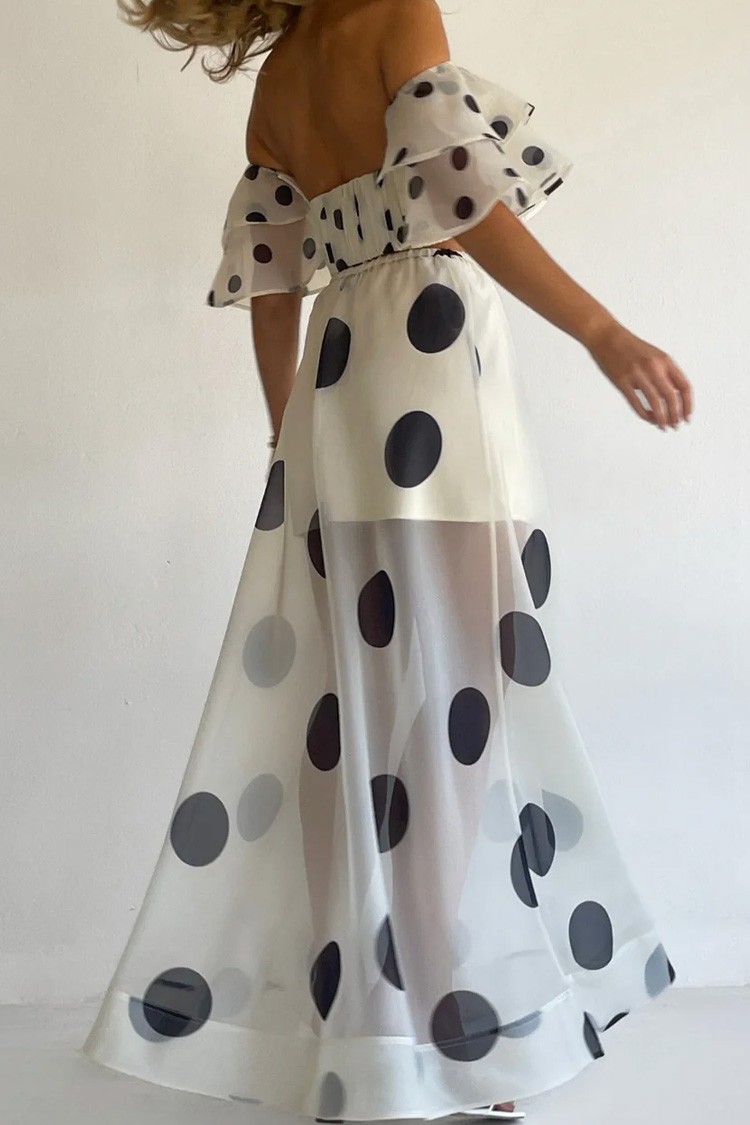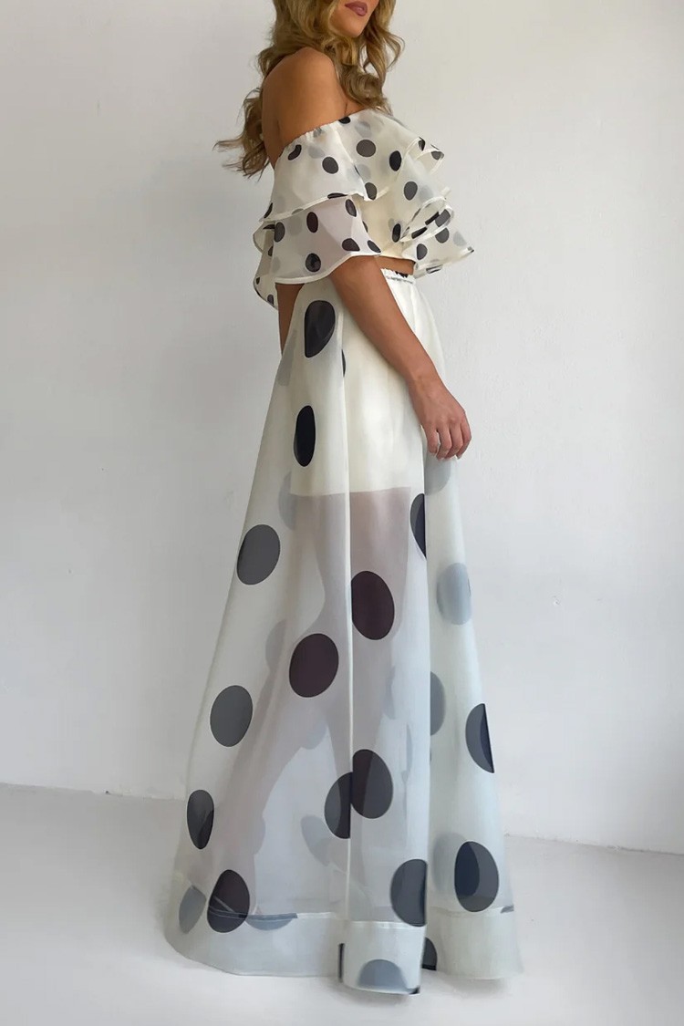 - Topul este un crop top, cu croială asimetrică și volane spectaculoase.