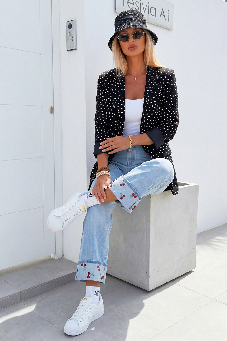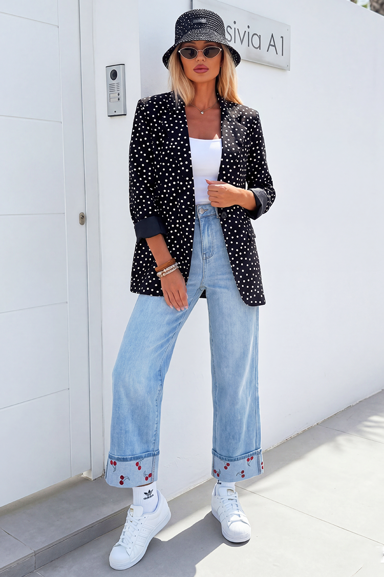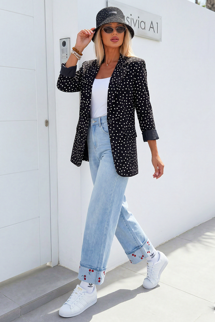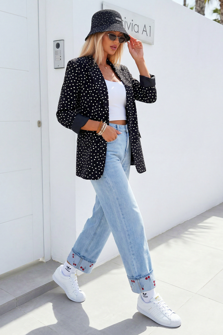- Combină stilul cu confortul! Modelul are o croială confortabilă, guler cu rever și un model atractiv cu buline.