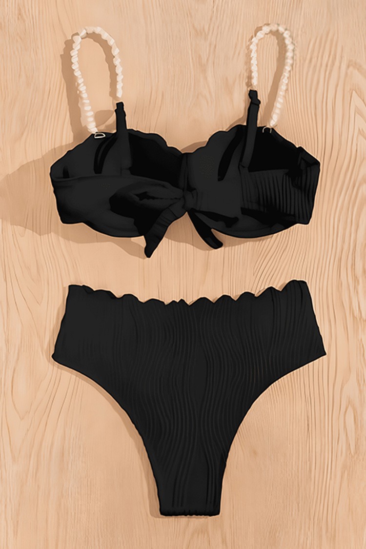 - Partea de sus are căptușeală detașabilă și bretele elegante, reglabile, cu perle decorative.