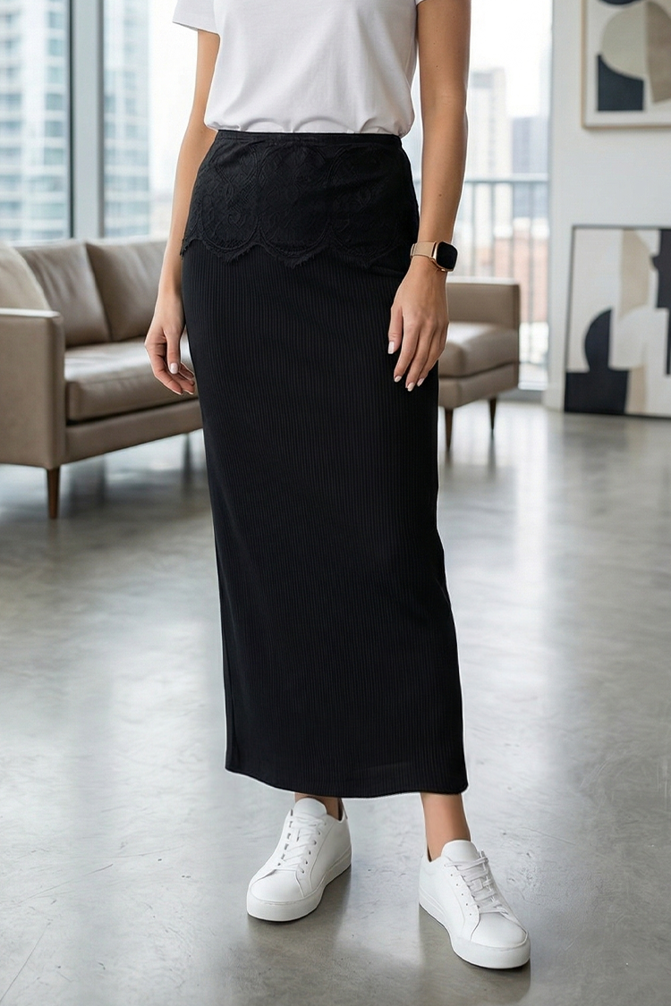 - Modelul are o lungime mini, croială mulată, accent de dantelă și culoare neagră.