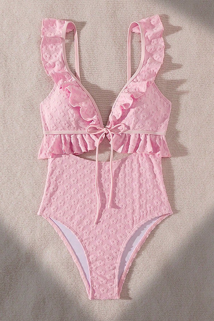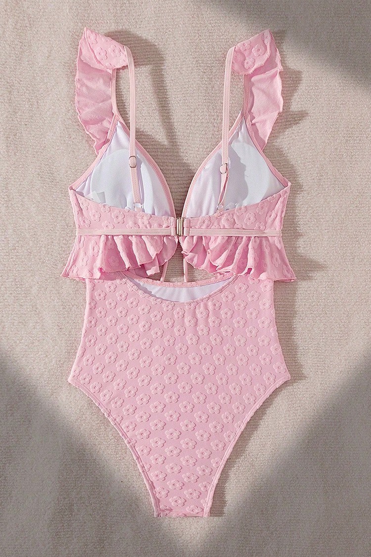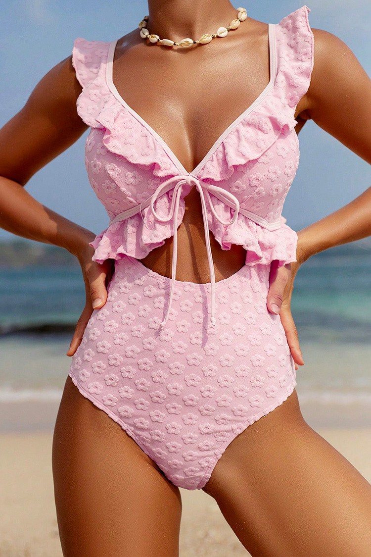 - Costum de baie întreg cu un design modern, de culoare roz, care te va face să te simți confortabil.