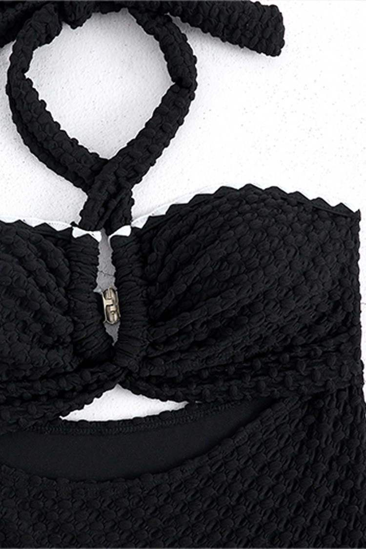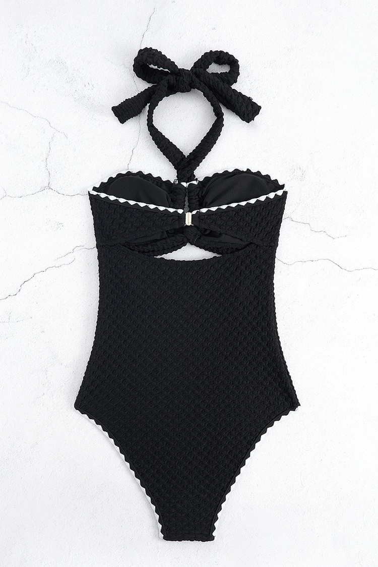 - Costum de baie întreg cu un design modern, de culoare neagra, care te va face să te simți confortabil.