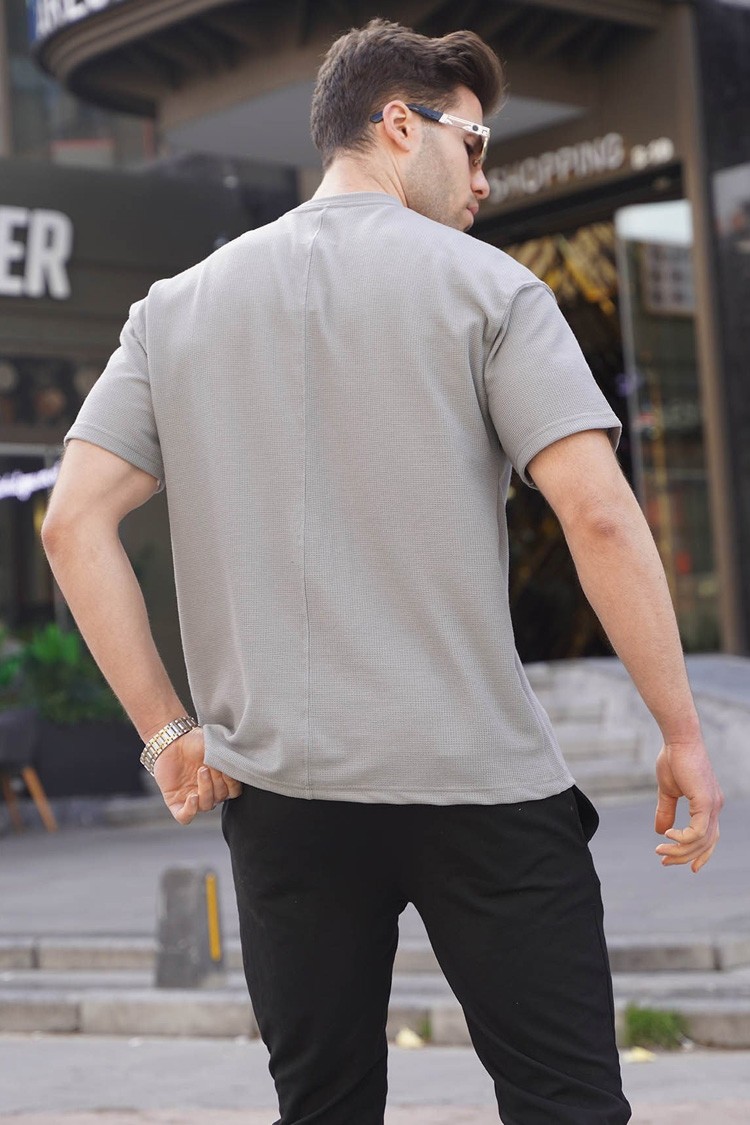 - Tricou pentru bărbăti cu guler rotund, potrivit ca o completare la ținuta de zi cu zi sau la îmbrăcămintea sport.