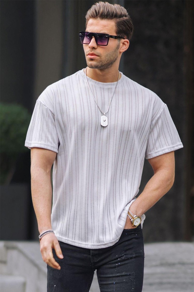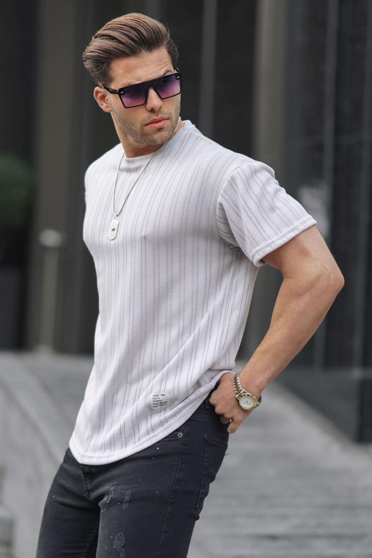 - Tricou pentru bărbăti cu guler rotund, potrivit ca o completare la ținuta de zi cu zi sau la îmbrăcămintea sport.